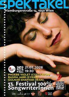 In der dicht bespielten Kulturstadt Wien setzt das Festival diesmal einen klaren Fokus und findet an einem einzigen Abend an einem neu gefundenen Spielort statt: im Spektakel. Passend zum Monat des Internationalen Frauentags präsentieren drei Künstlerinnen aus Costa Rica, dem Iran und Syrien ihre Musik.